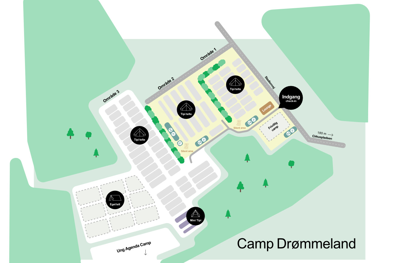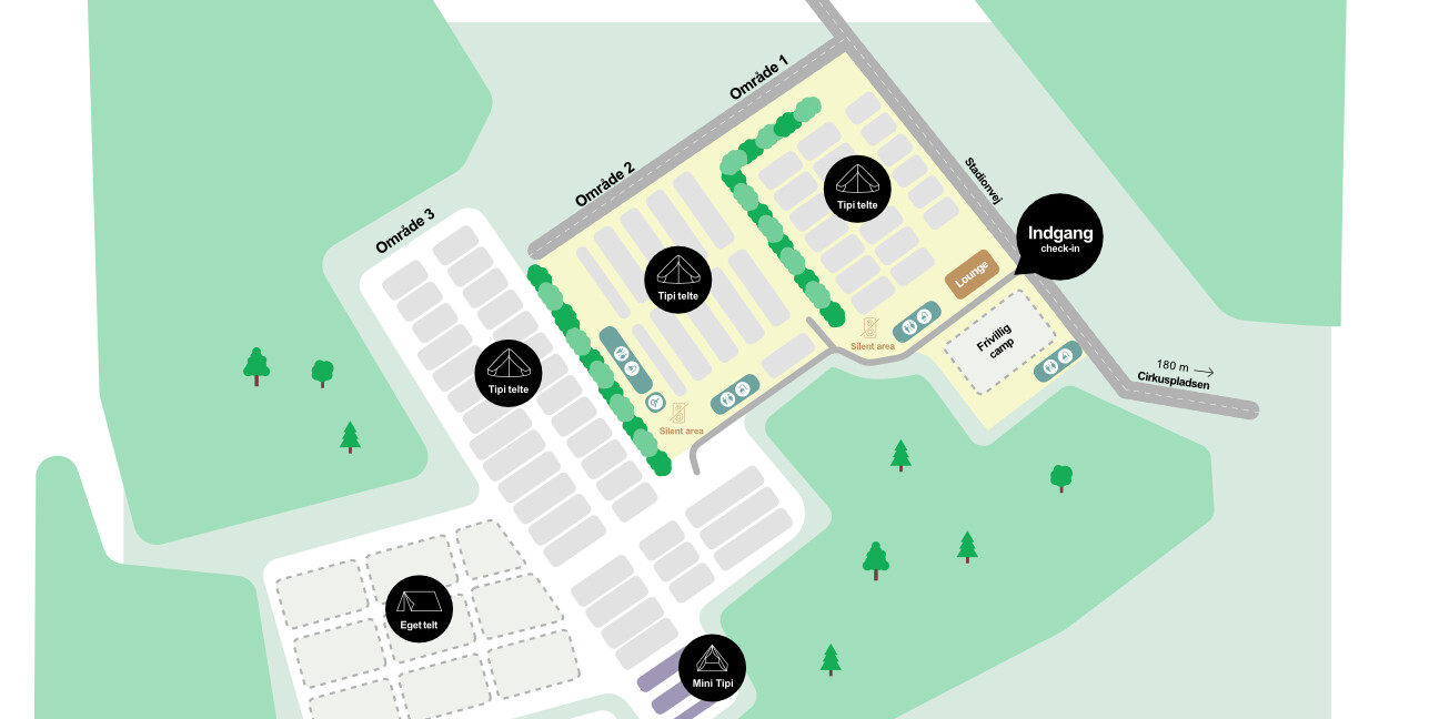 For at få adgang til campen skal alle personer, der sover i teltet købe et camp armbånd, som giver adgang til campen.